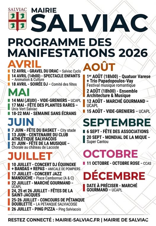 Programme des manifestations 2026 à Salviac